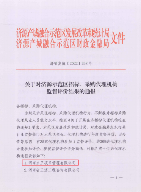 监督评价工作持续了近一个月,12月15日通报了监督评价结果,共有35家代理机构参与评价,按照监督评价得分高低,我公司综合得分第一名