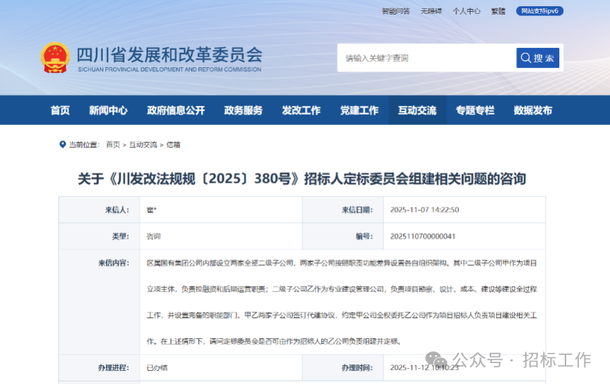 关于《川发改法规规〔2025〕380号》招标人定标委员会组建相关问题的咨询